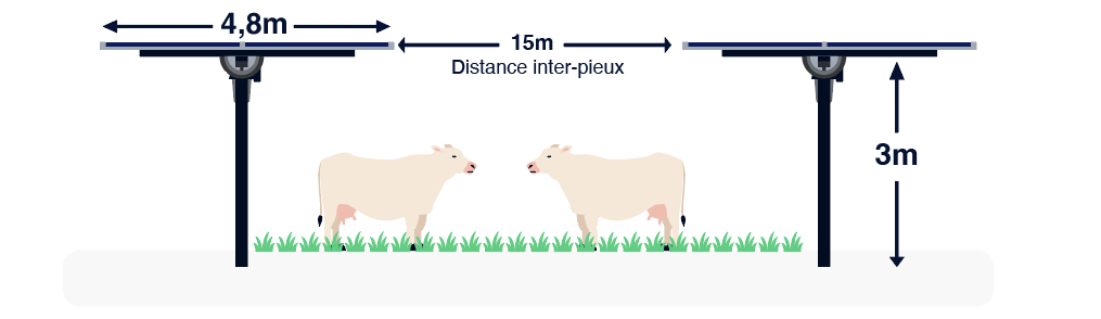 Les panneaux resteront à l’horizontale pendant le pâturage des bêtes, et pourront s’incliner pour suivre la course du soleil ou laisser les engins agricoles passer le reste du temps.