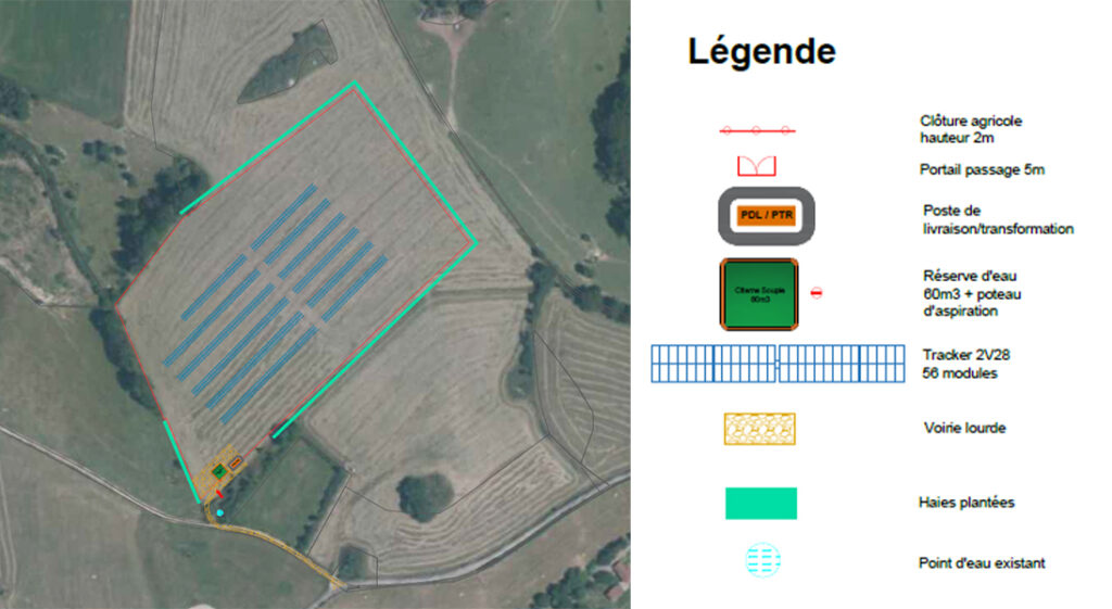 Le scénario d’implantation final sera le résultat d’une variante adaptée aux cultures agricoles et optimisant la production d’électricité renouvelable. Celui-ci a été pensé pour répondre aux exigences réglementaires tout en prenant en compte les dimensions humaines et environnementales, en concertation avec les acteurs du territoire.