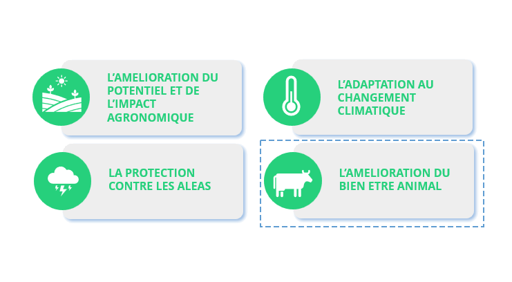Pour être considéré comme relevant de l’agrivoltaïsme et se voir autorisé par le Préfet, un projet doit justifier que la production agricole reste l’activité principale de l’exploitation, et que l’installation agrivoltaïque fournira au moins l’un des services suivants (et qu’ils ne porteront pas atteinte à deux autres de ces services). Pour Amplepuis, ce sera l’amélioration du bien-être animal.